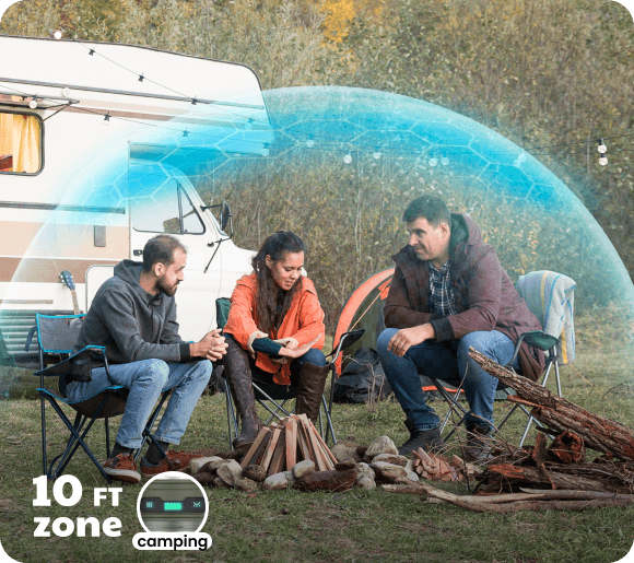 Camp Mode skapar en 10-fots skyddszon under 10 timmar, medan Outdoor Mode skapar en 30-fots skyddszon under 7 timmar.