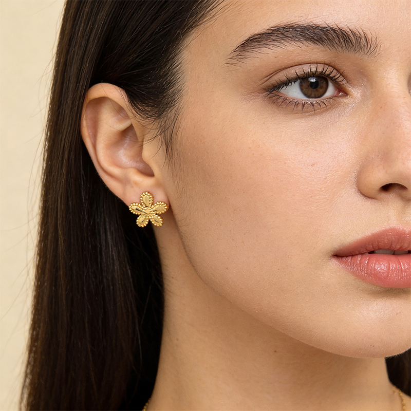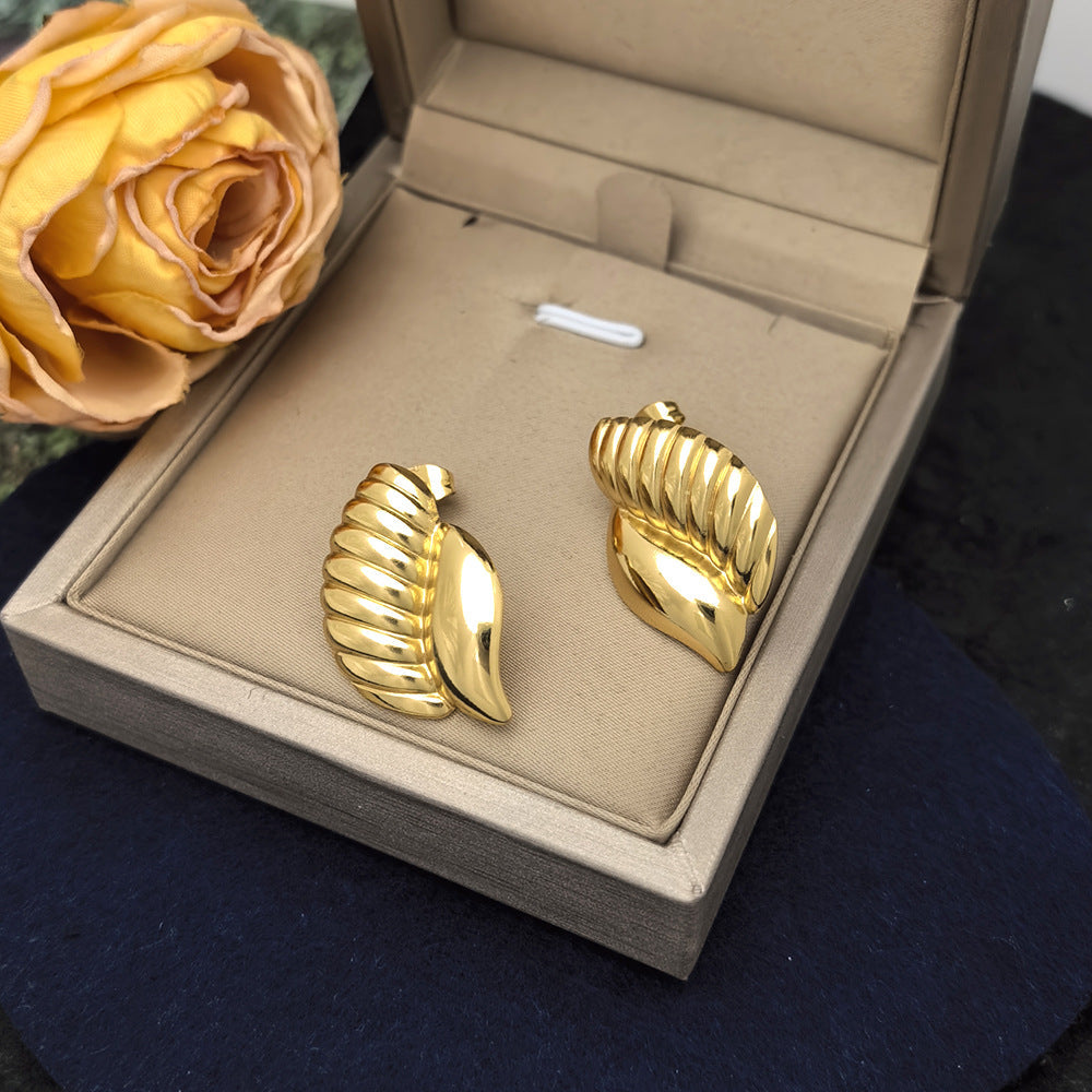 Den vackra guldpläterade ytan ger ett varmt, lyxigt skimmer. Ljuset reflekteras elegant från de mjuka kurvorna och framhäver de skulpturala detaljerna, vilket ger örhängena ett raffinerat och iögonfallande utseende.