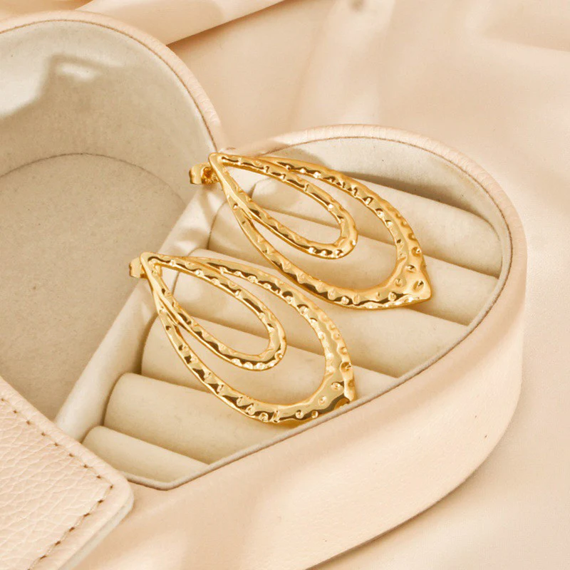 Den abstrakta hjärtformen bryter med traditionella linjer och skapar ett modernt, konstnärligt uttryck. De organiska, nästan smälta formerna ger örhängena djup och karaktär – en design som omedelbart fångar ögat och ger din look en unik signatur.